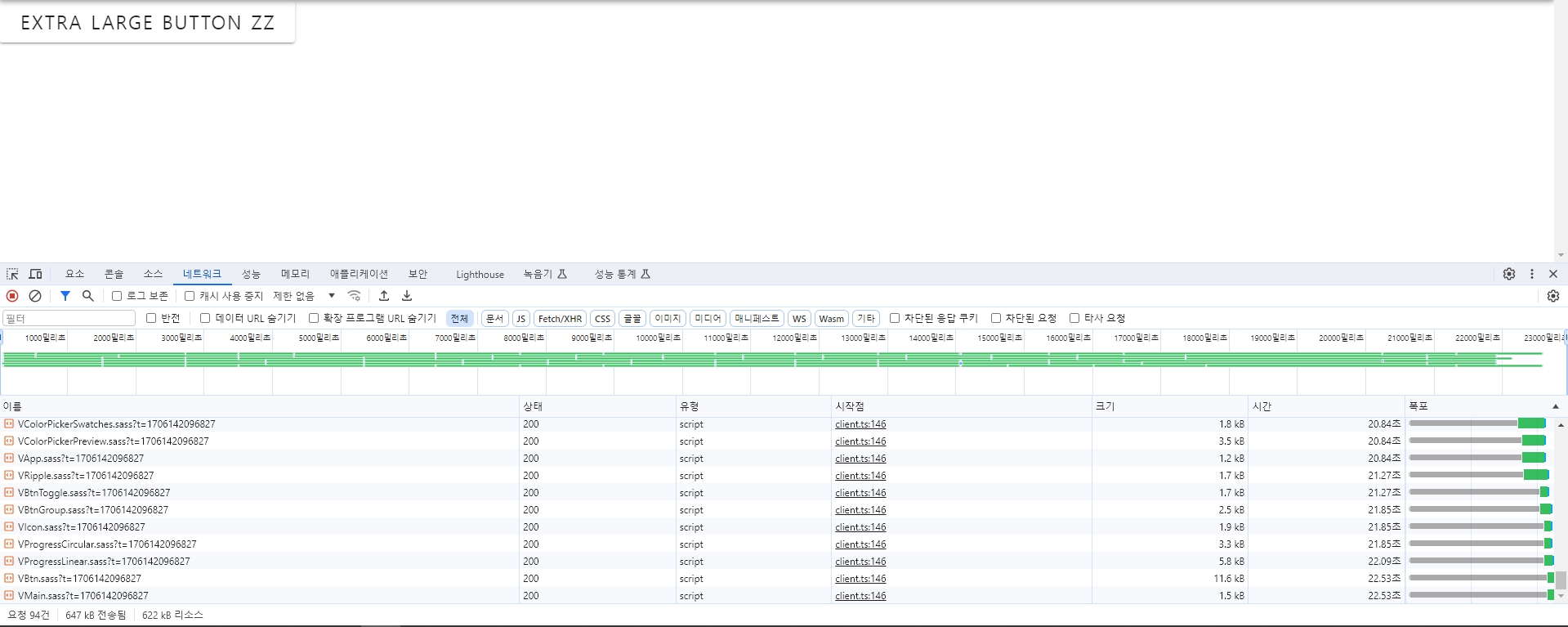 SCSS 속성 3개를 Override 후, 화면을 로딩했을 때엔 말도 안되게 23초 이상의 시간이 소요되었다.
