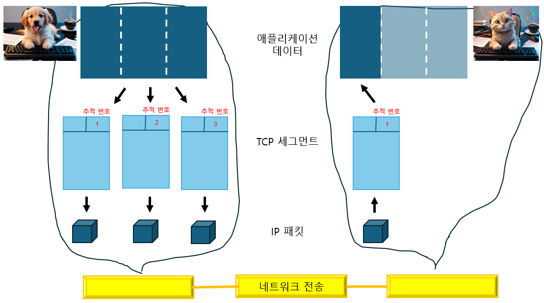 애플리케이션이 전송하려는 데이터를 세그먼트로 분할하고, 각 세그먼트에 번호를 매긴다.